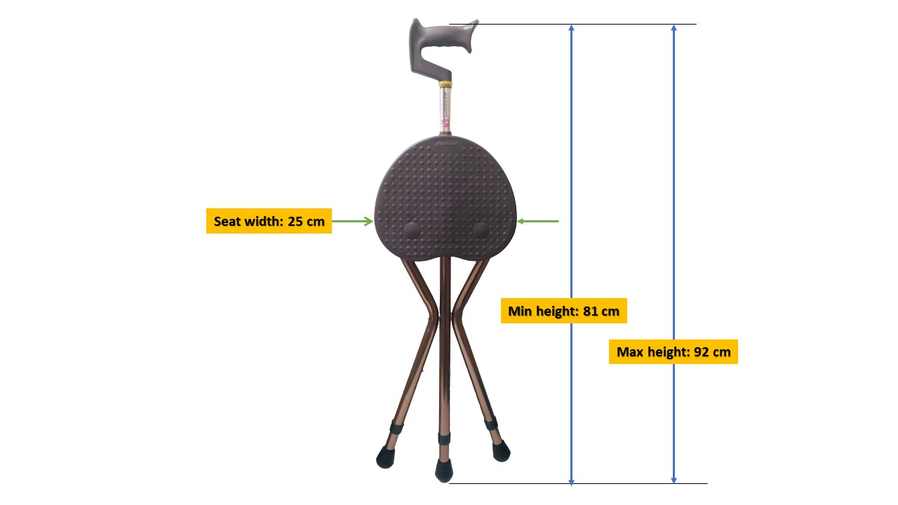 – Minimum walking stick height from ground to handle – 81 cm, maximum – 92 cm