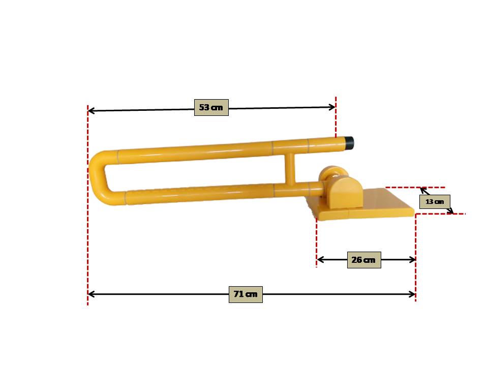 Dimensions: Overall length 71 cm, grab bar length 53 cm, mounting base 26 cm x 13 cm, weight approximately 2.8 kg