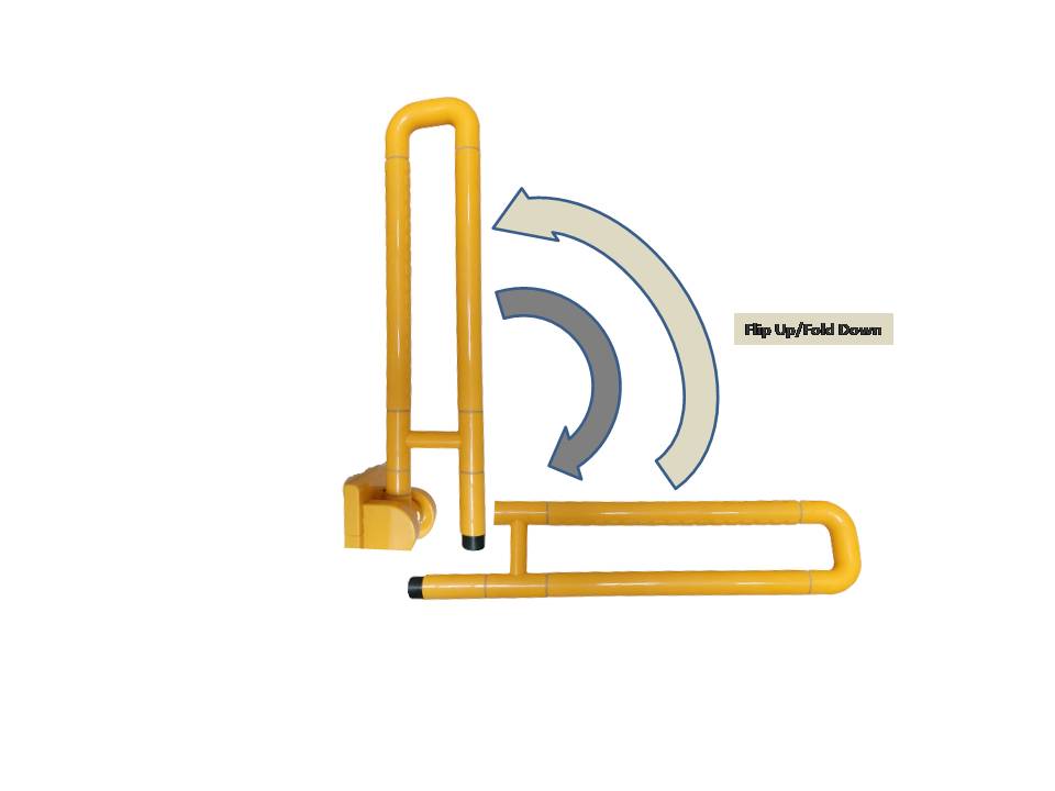 -When not in use, flip the grab bar and it will automatically return to flip up position due to spring loading mechanism, thus saving space and not causing unnecessary obstruction
