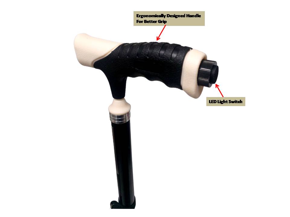 Lightweight Aluminum Height Adjustable Round Pivot Quad Base Walking Stick With LED Light SMART