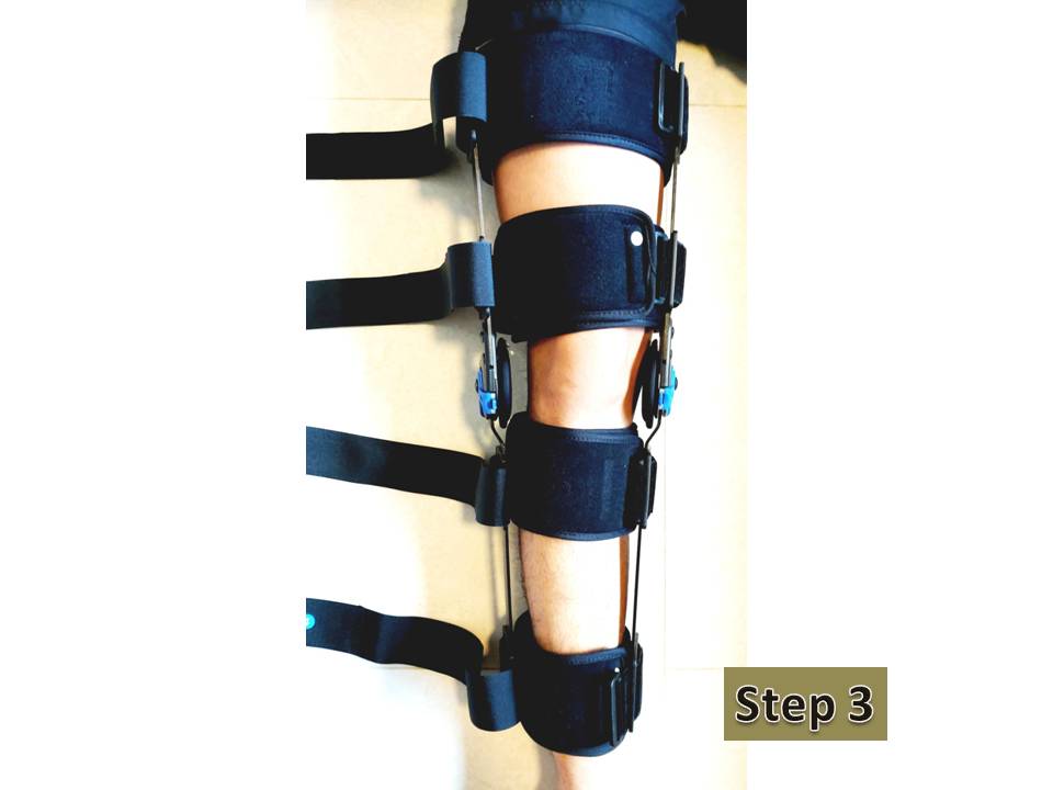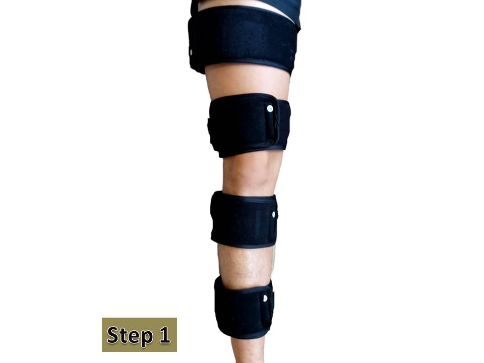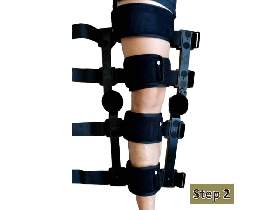 *If properly put on and calibrated by setting the dial to the required angle of flexion (1-120 degree), it prevents the patient’s knee from hyper-extending beyond its ability and limits