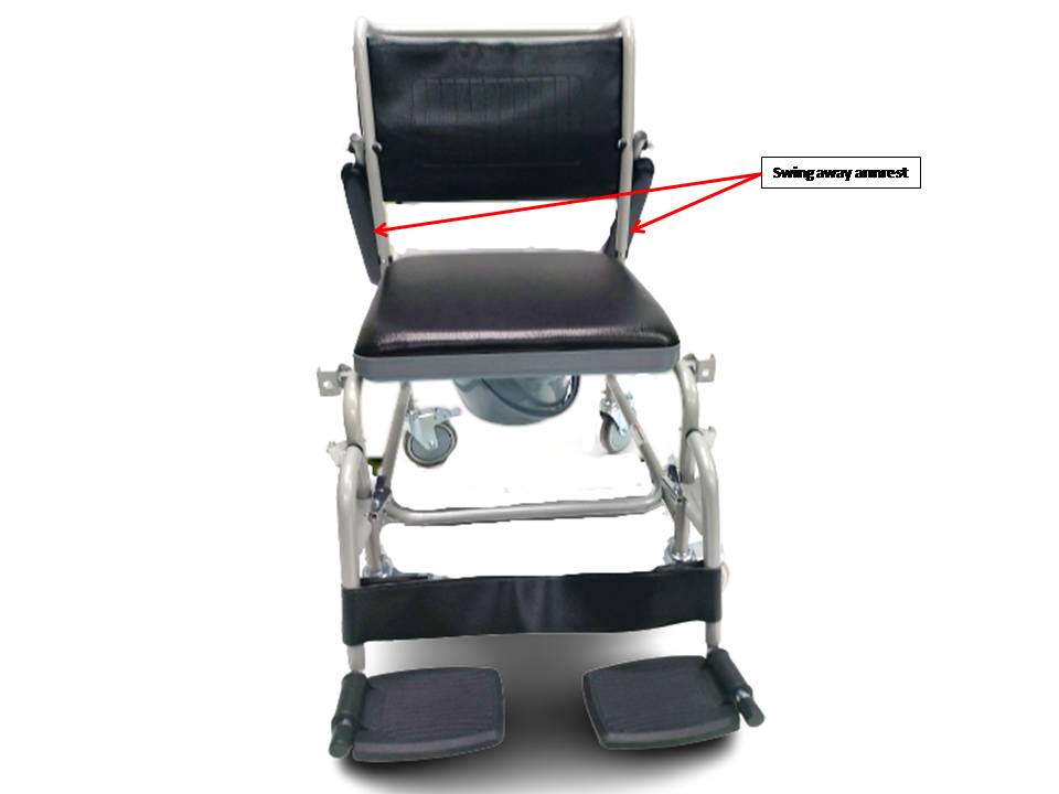 -Swing away armrests for easy transfer of user in and out of commode
