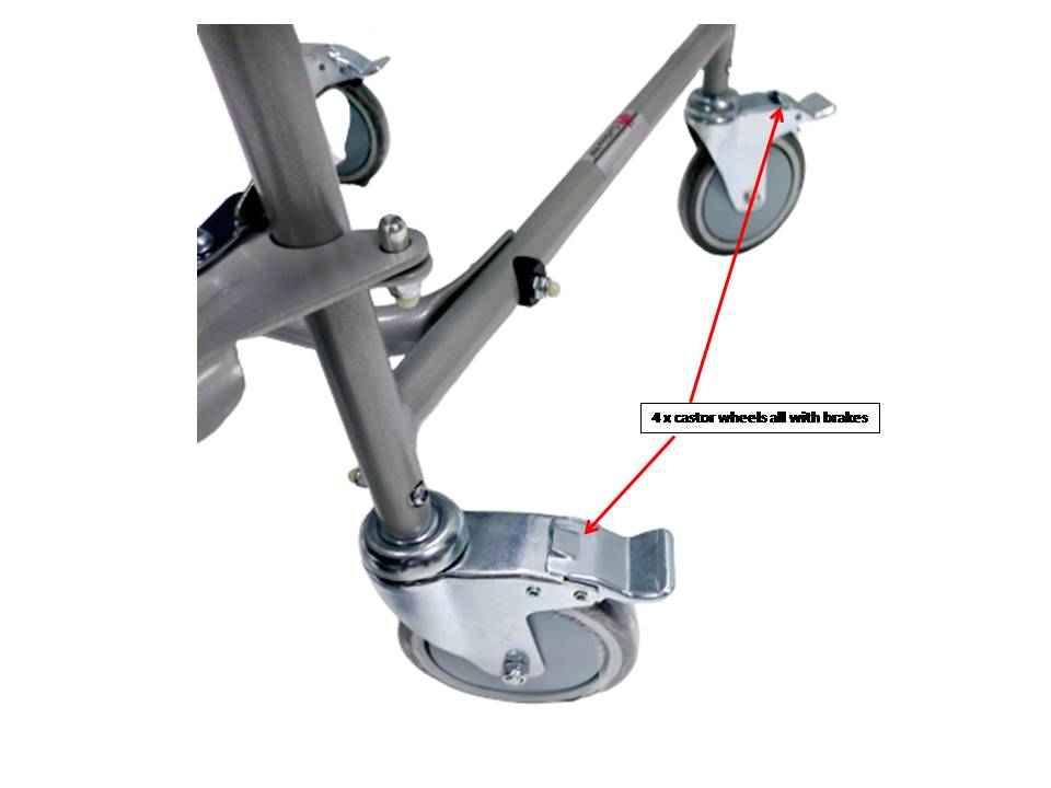 -4 x castor wheels each with individual brake for added safety