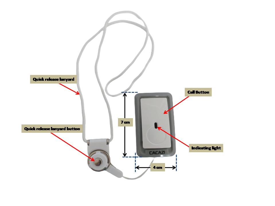 -Call Button can either be carried with the elderly on a purpose-built quick release lanyard over the neck or to be wall mounted (screws and double-sided tape provided) beside user’s bed, bathrooms, rest areas etc